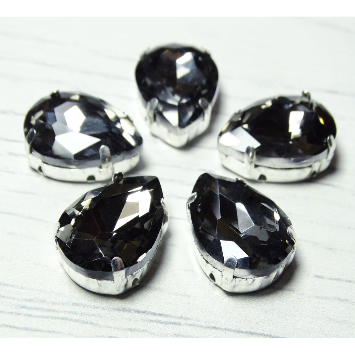 Хрустальные стразы в цапах формы капля, серый 13х18 мм, 3 шт АЦ012НН1318