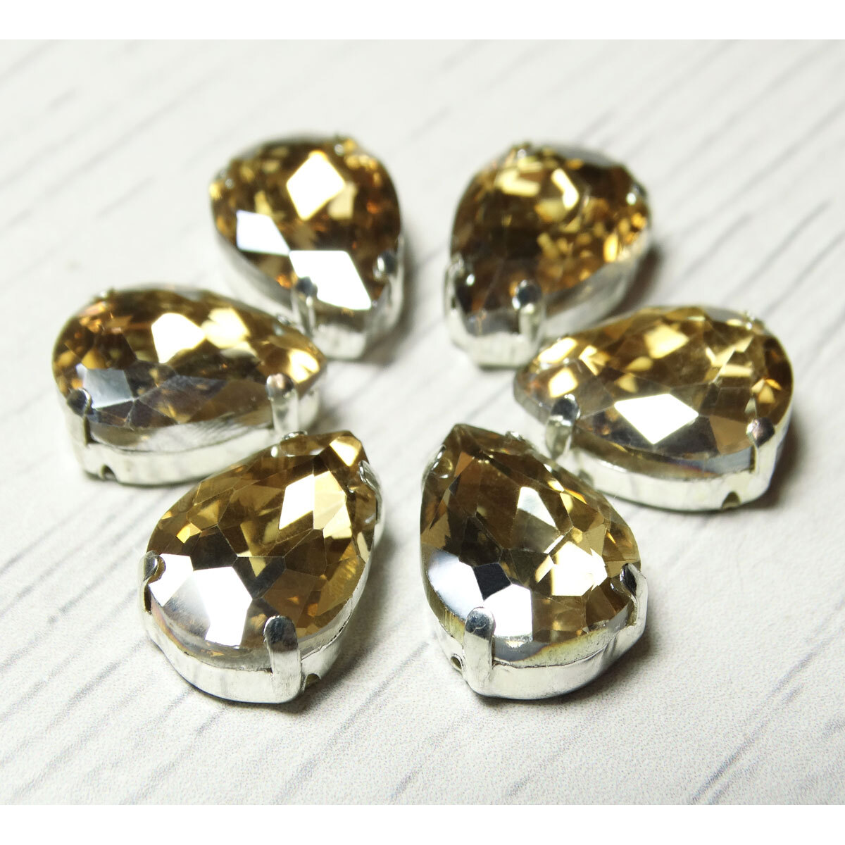 Хрустальные стразы в цапах формы капля, шампанское 10х14, 5 шт АЦ016НН1014
