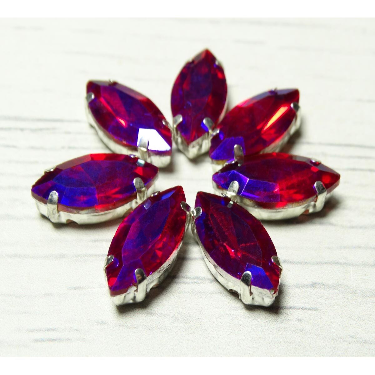 Хрустальные стразы в цапах формы миндаль, фуксия с AB покрытием, 7х15 мм, 5 шт МЦ012НН715