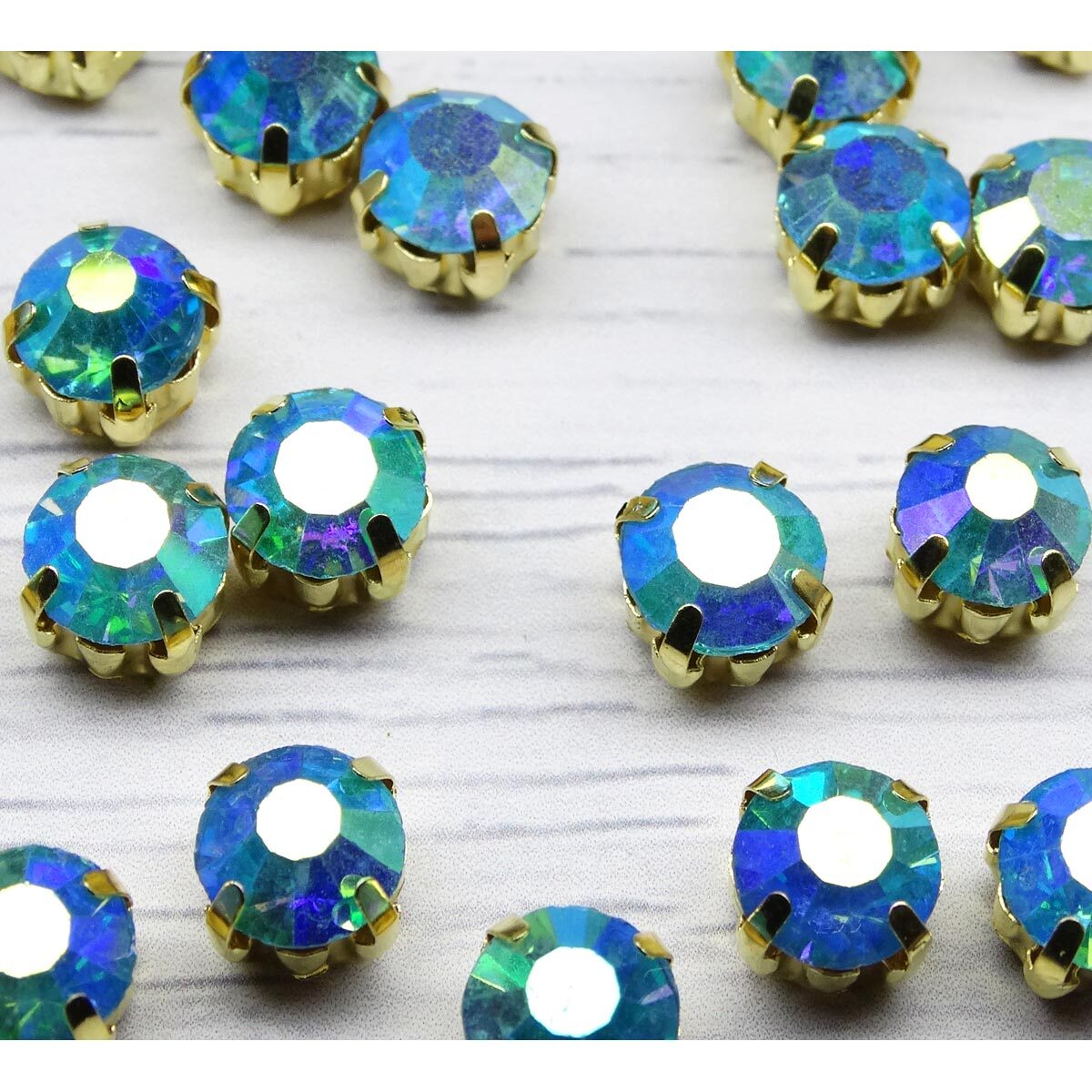 Хрустальные стразы в цапах, ярко-голубой, с покрытием, 8 мм, 10 шт/упак ЗЦ004ДС88