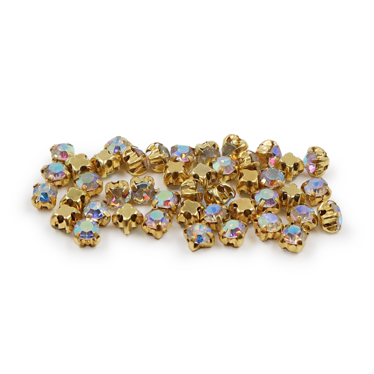 Хрустальные стразы в цапах/золото, 4мм, 50 шт/упак, Astra&Craft (42 прозрачный AB), 4AR159/166