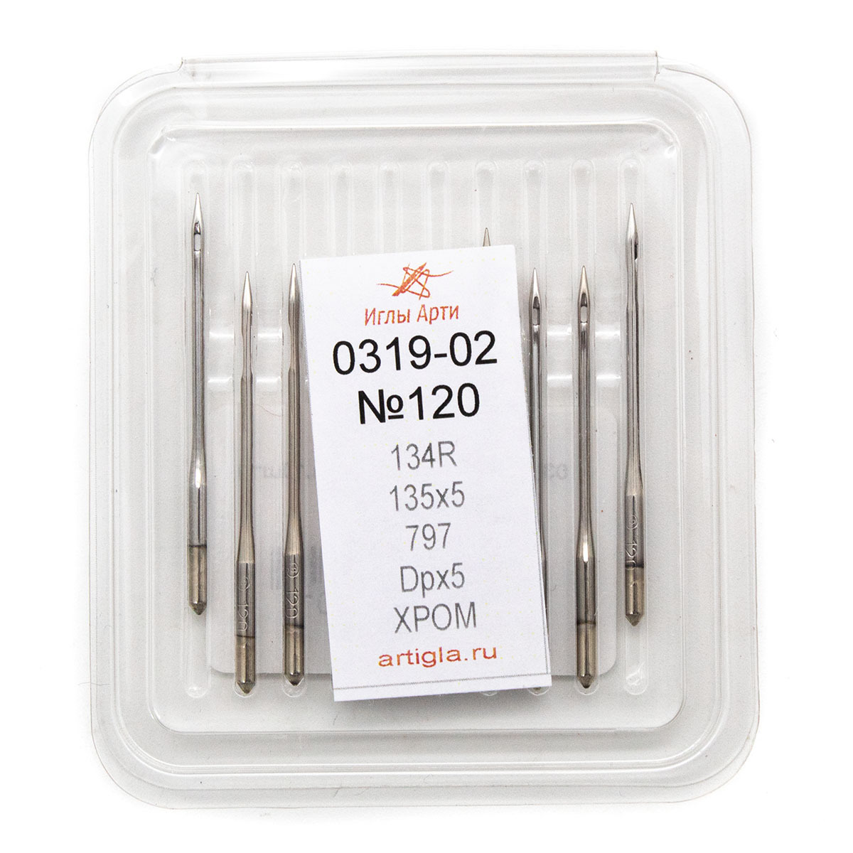 Иглы российской торговой марки 'Арти' производятся на заводе с более чем 80-летней историей (основан в 1941 году). Продукция хорошо известна российскому потребителю. Данные иглы изготовлены из инструментальной стали – 'английской проволоки'. Такая сталь особенно твердая и прочная, устойчива к перегреву, не ломается и не гнется. Иглу подвергают хромированию, чтобы она легче проходила через материал, не собирала пыль и грязь. Иглы данной модели предназначены для прямострочных промышленных швейных машин. Универсальные, совместимы с различными тканями и материалами. Зарубежные аналоги: 134R; 797; 135x5; 135x7; SY6790; DPx5; PFx134; DPx7. Размер: №120. Количество: 10 игл в упаковке.