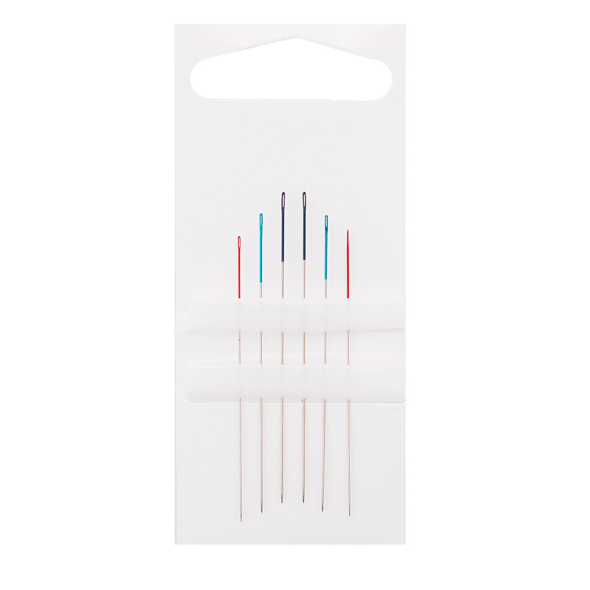 Иглы ручные для бисера с цветн. ушком, №10,11.12, серебро/цв. черный/голуб, красн.6 шт, Pony