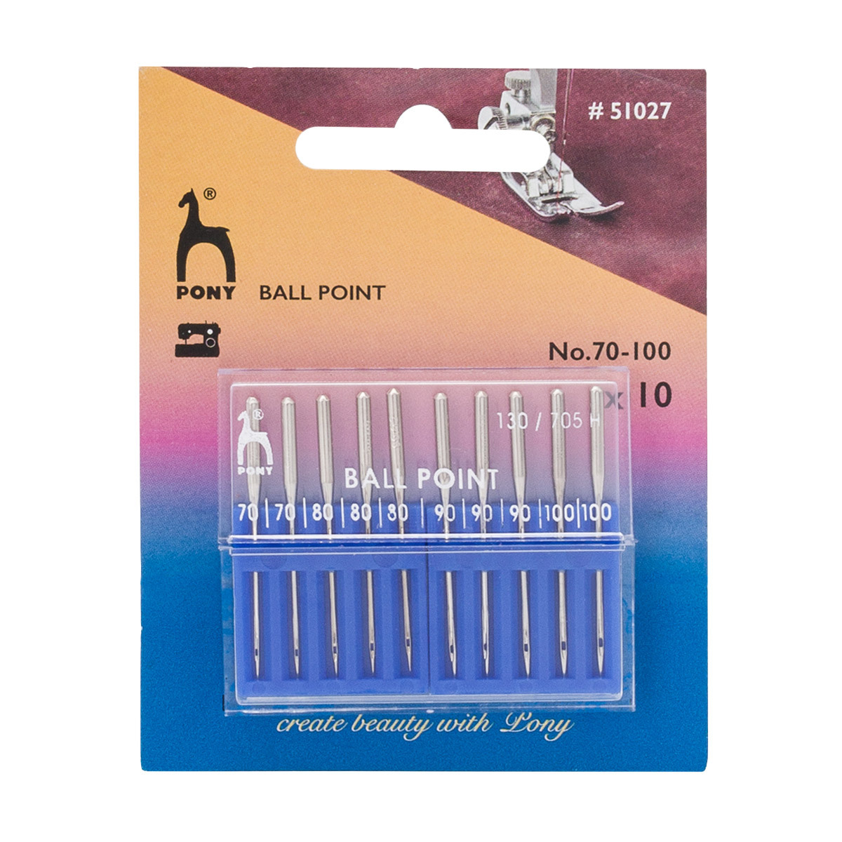 Иглы для швейных машин для трикотажа 130/705 H, №70-100 с плоской колбой, 10 шт, Pony, 51027