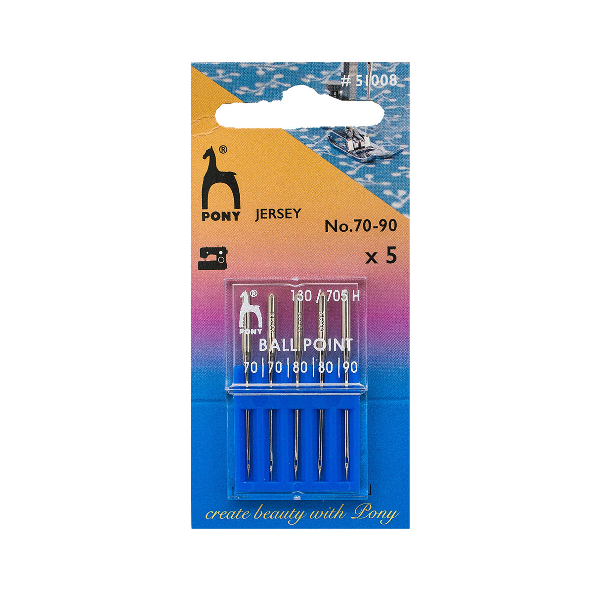 Иглы для швейных машин для трикотажа 130/705 H, №70-90 с плоской колбой, 5 шт, Pony, 51008