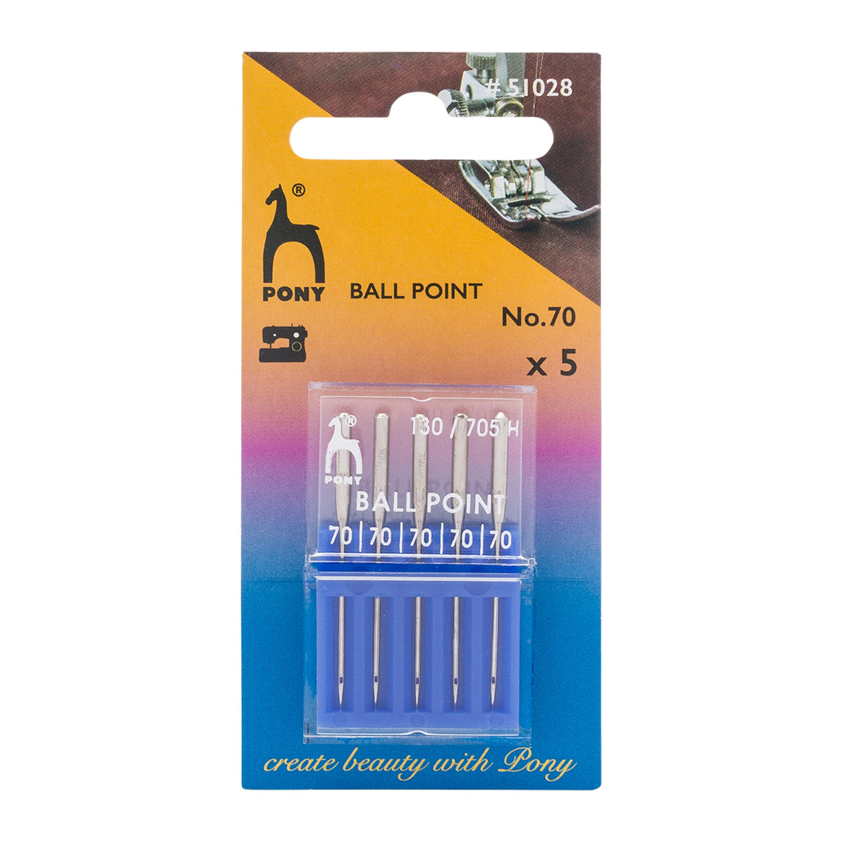Иглы для швейных машин для трикотажа 130/705 H, №70 с плоской колбой, 5 шт, Pony, 51028