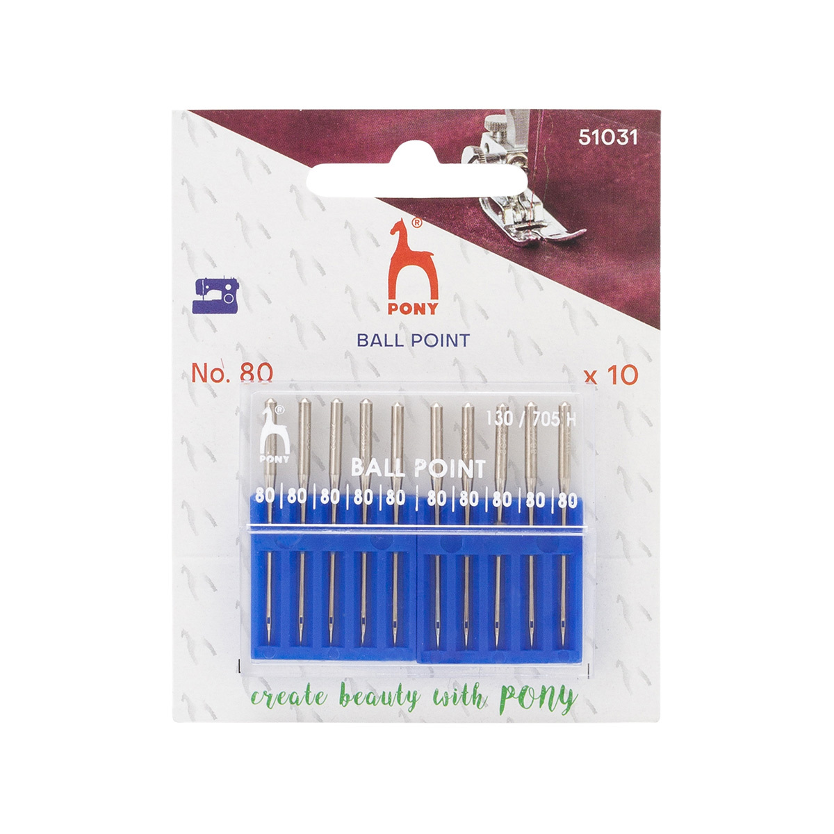 Иглы для швейных машин для трикотажа 130/705 H, №80 с плоской колбой, 10 шт, Pony, 51031