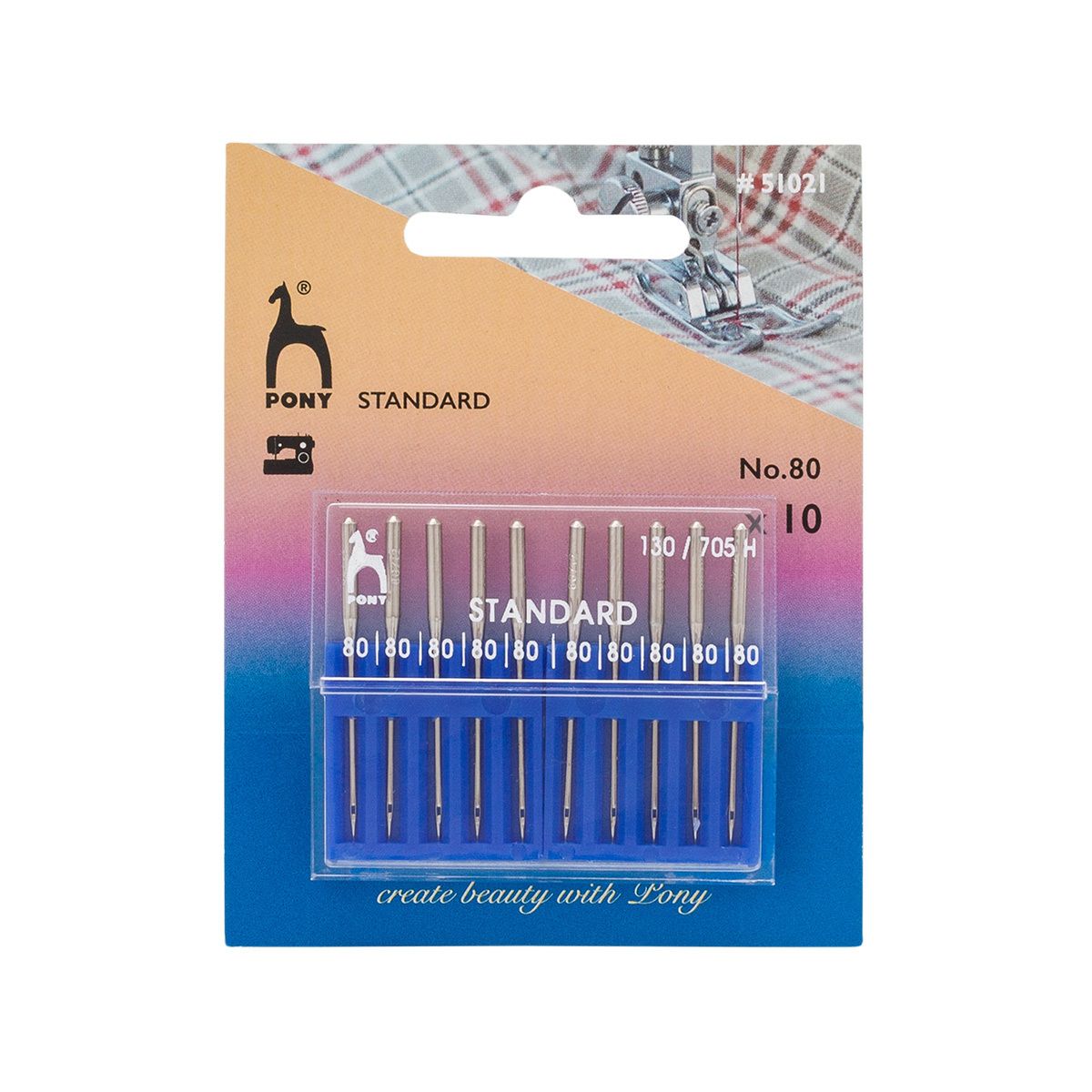 Иглы для швейных машин базовые универсальные 130/705 H, №80 с плоской колбой, 10 шт, Pony, 51021