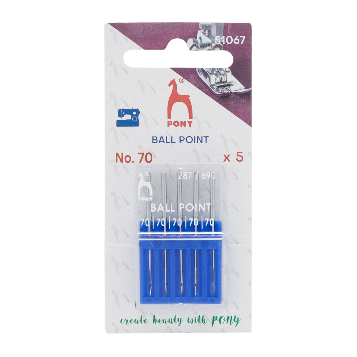 Иглы для промышленных швейных машин для трикотажа 287/690, №70 с круглой колбой, 5 шт, Pony, 51067