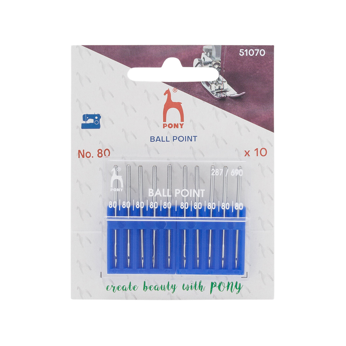Иглы для промышленных швейных машин для трикотажа 287/690, №80 с круглой колбой, 10 шт, Pony, 51070