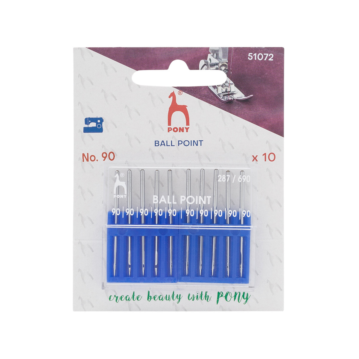 Иглы для промышленных швейных машин для трикотажа 287/690, №90 с круглой колбой, 10 шт, Pony, 51072