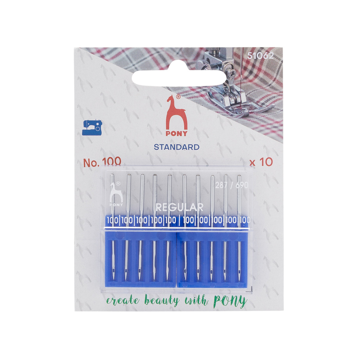 Иглы для промышленных швейных машин универсальные 287/690, №100 с круглой колбой, 10 шт, Pony, 51062