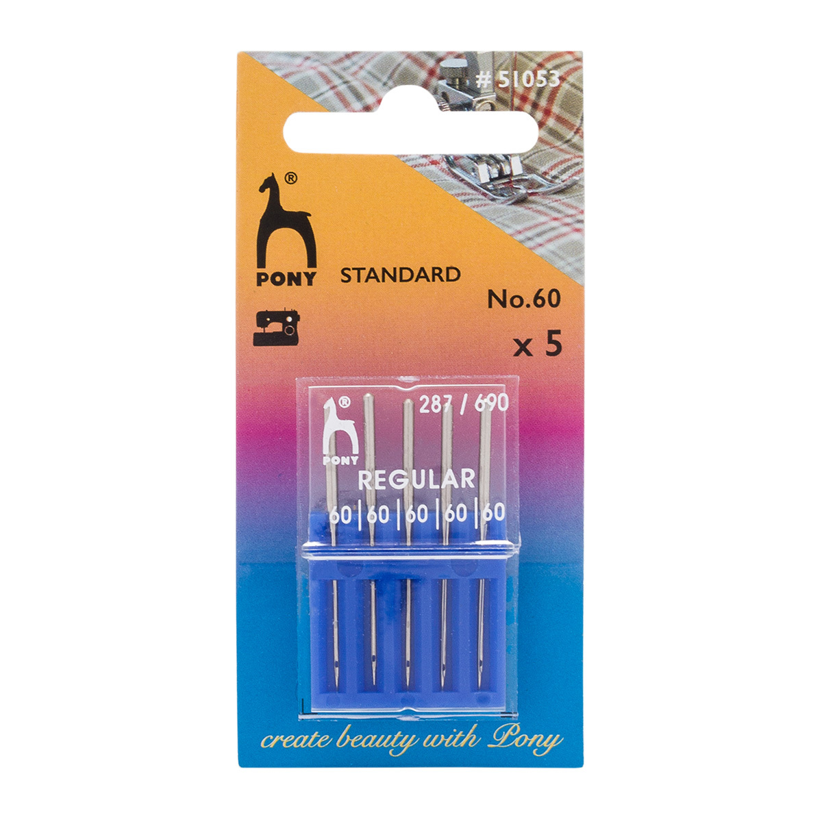 Иглы для промышленных швейных машин универсальные 287/690, №60 с круглой колбой, 5 шт, Pony, 51053