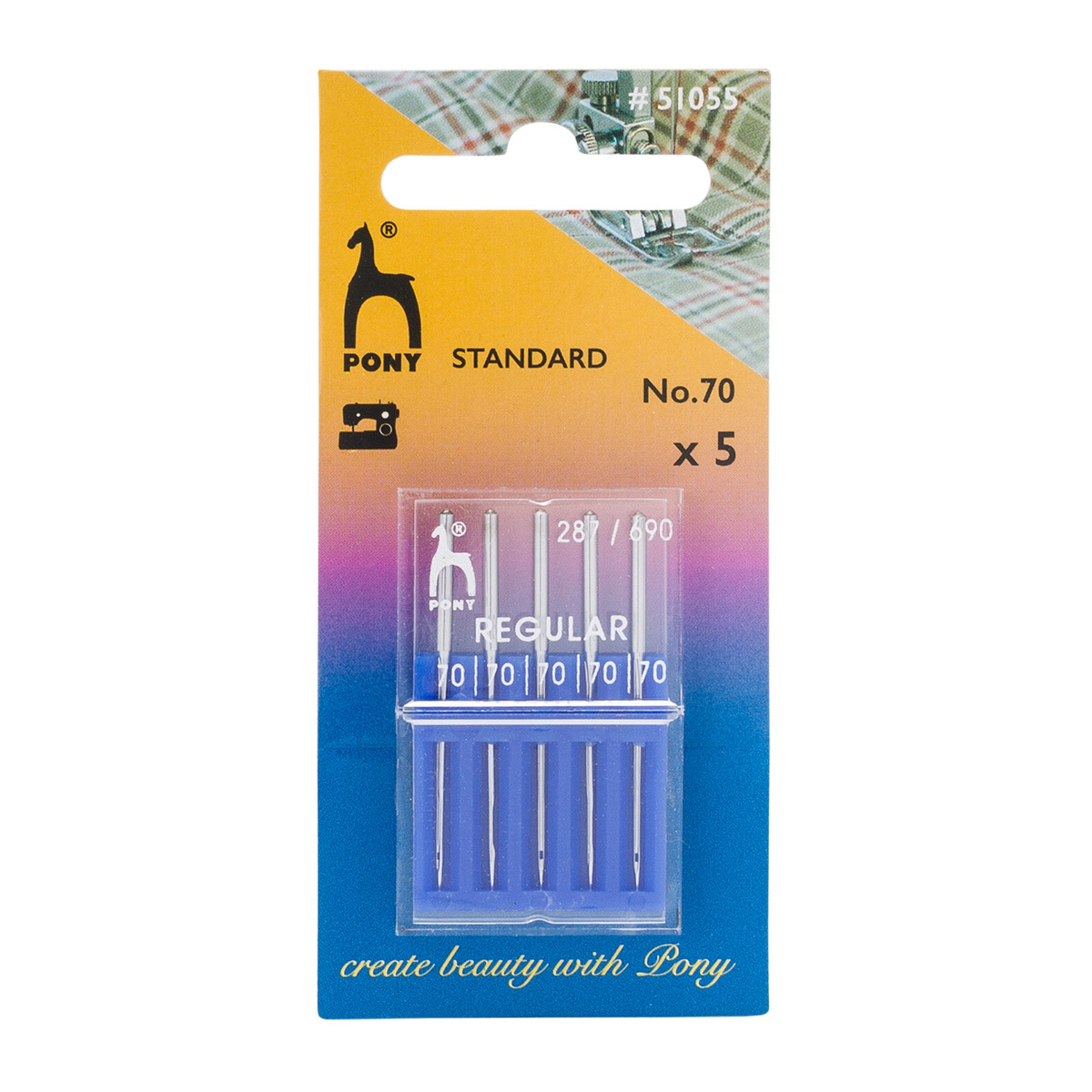 Иглы для промышленных швейных машин универсальные 287/690, №70 с круглой колбой, 5 шт, Pony, 51055