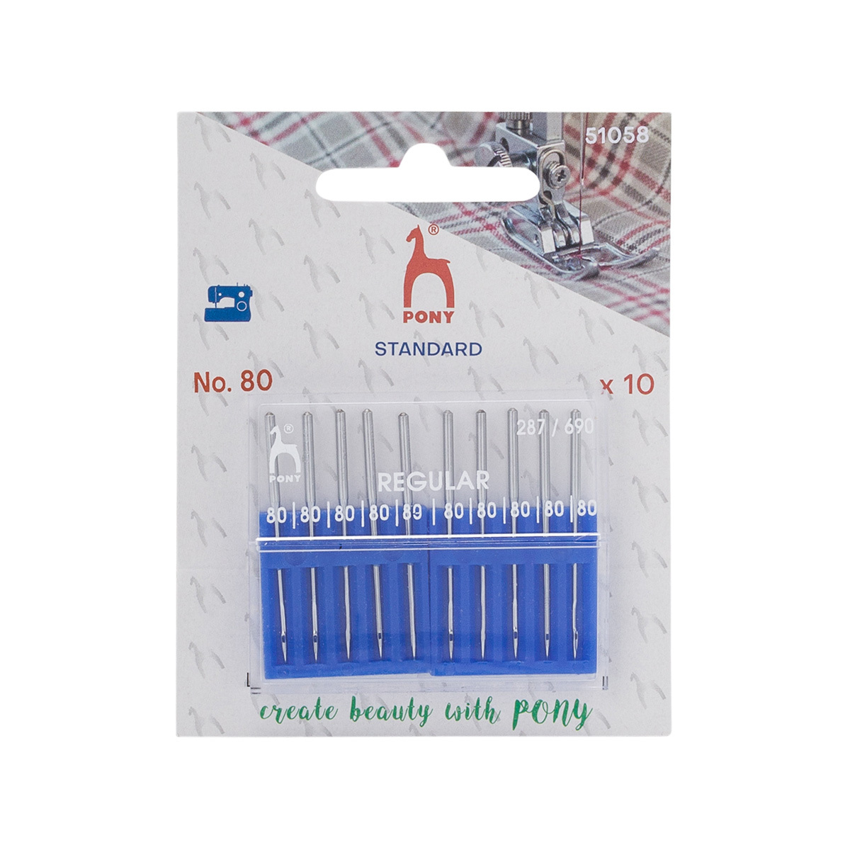Иглы для промышленных швейных машин универсальные 287/690, №80 с круглой колбой, 10 шт, Pony, 51058