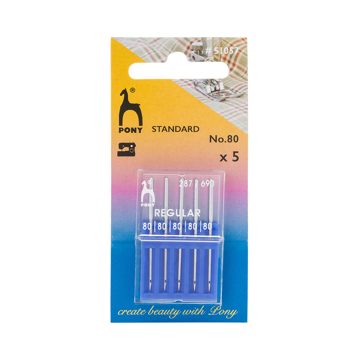 Иглы для промышленных швейных машин универсальные 287/690, №80 с круглой колбой, 5 шт, Pony, 51057