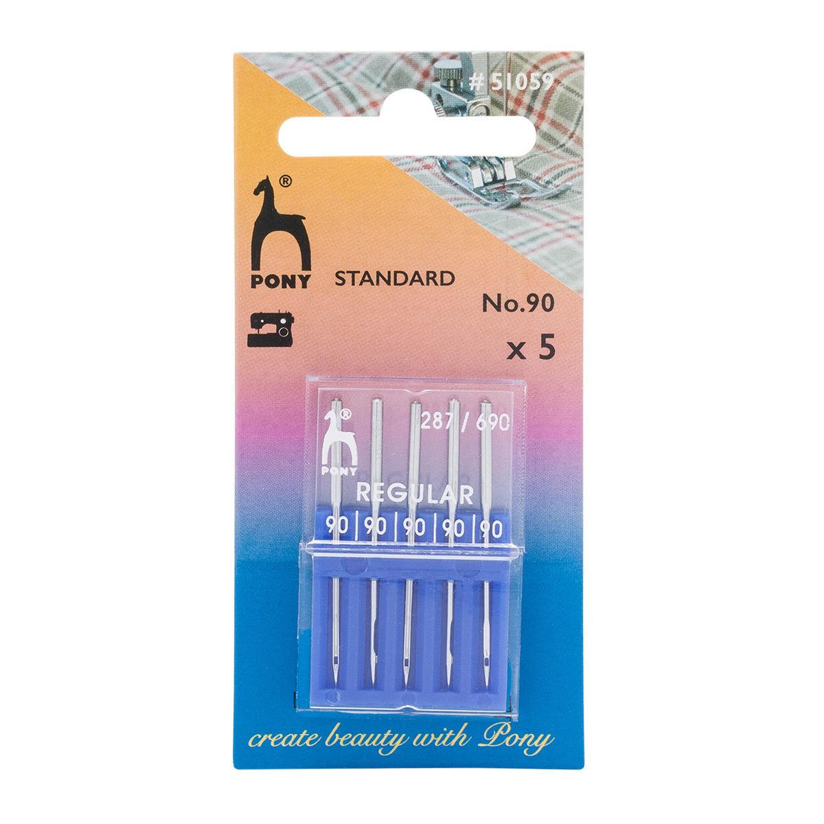 Иглы для промышленных швейных машин универсальные 287/690, №90 с круглой колбой, 5 шт, Pony, 51059