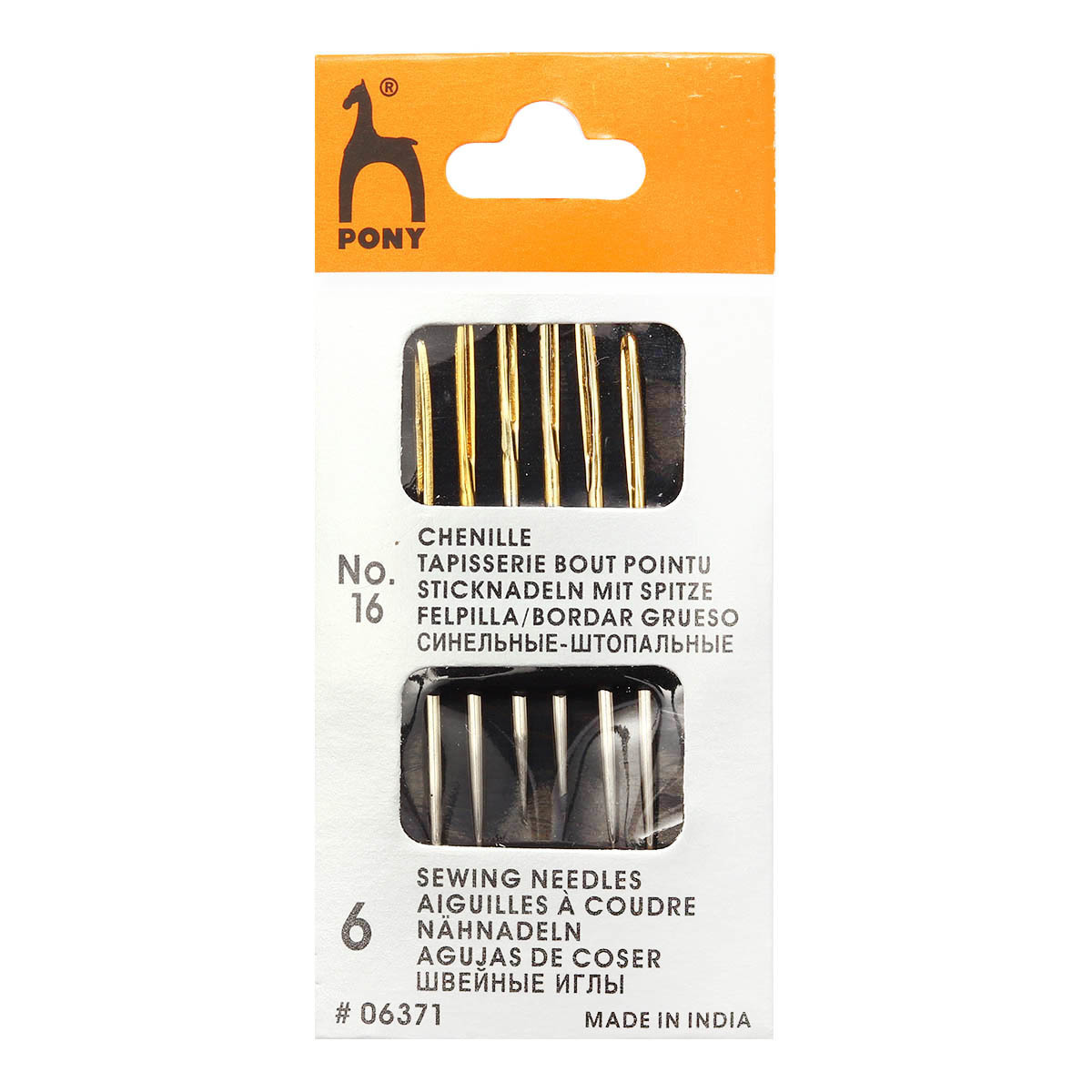 Иглы ручные для синели, глади № 16, 6 шт, Pony