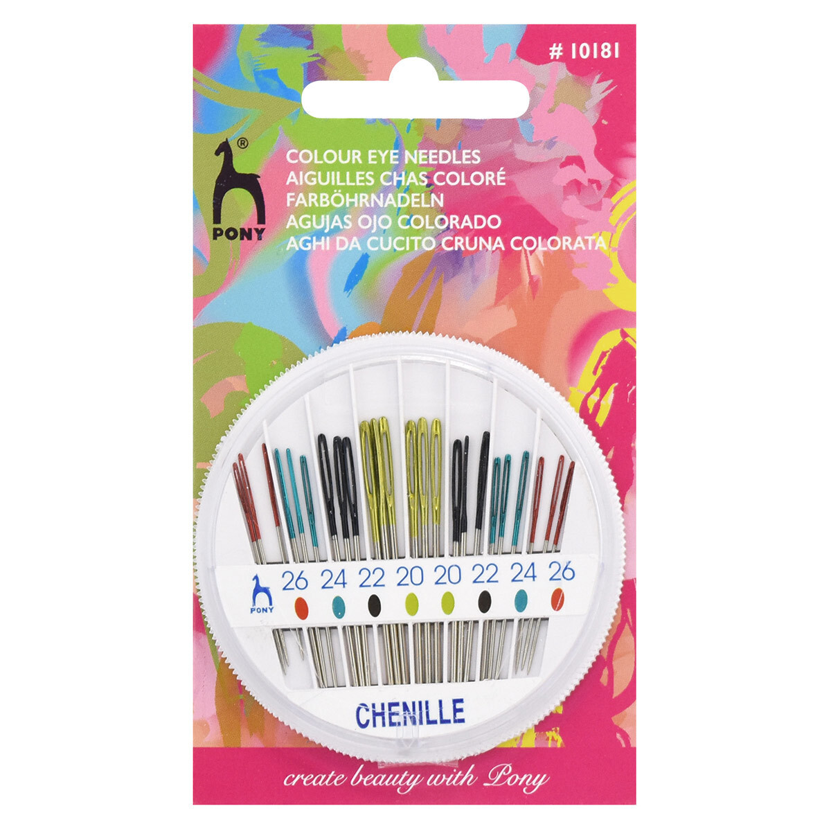 Иглы ручные для синели, глади с цветным ушком, №20-26,24 шт, в розетке, Pony