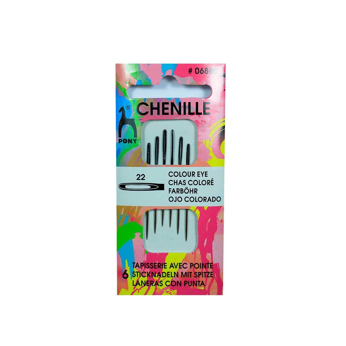 Иглы ручные для синели, глади с цветным ушком, №22,6 шт, Pony