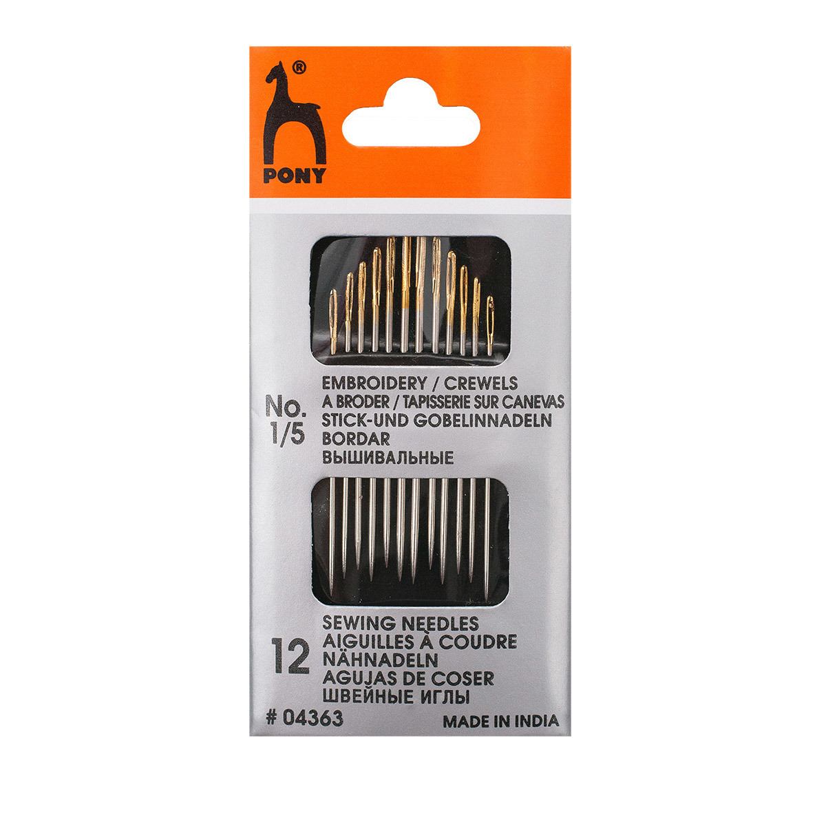 Иглы ручные для вышивания №1/5, 12 шт, Pony