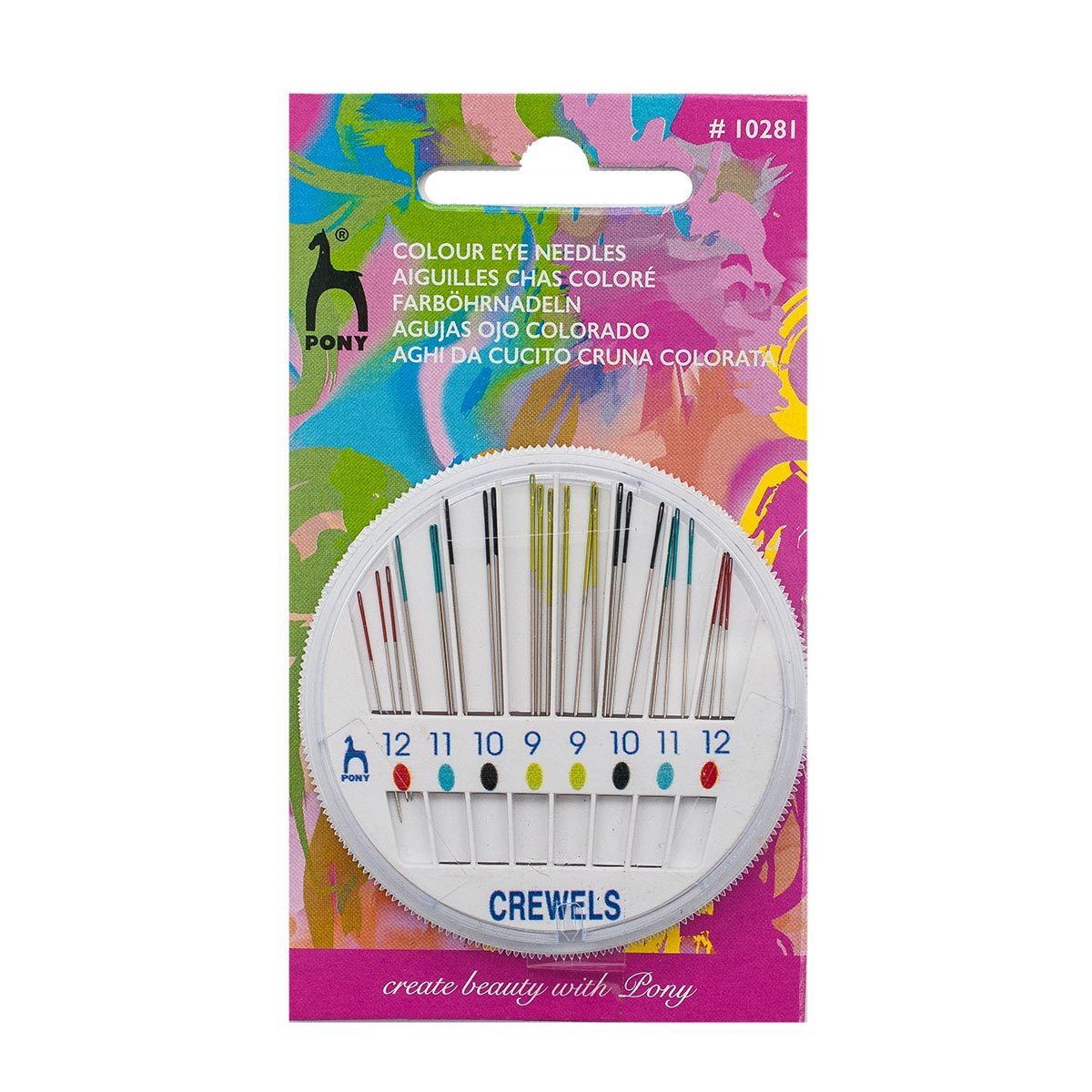 Иглы ручные для вышивания и бисера с цветным ушком, №9-12,24 шт, в розетке, Pony
