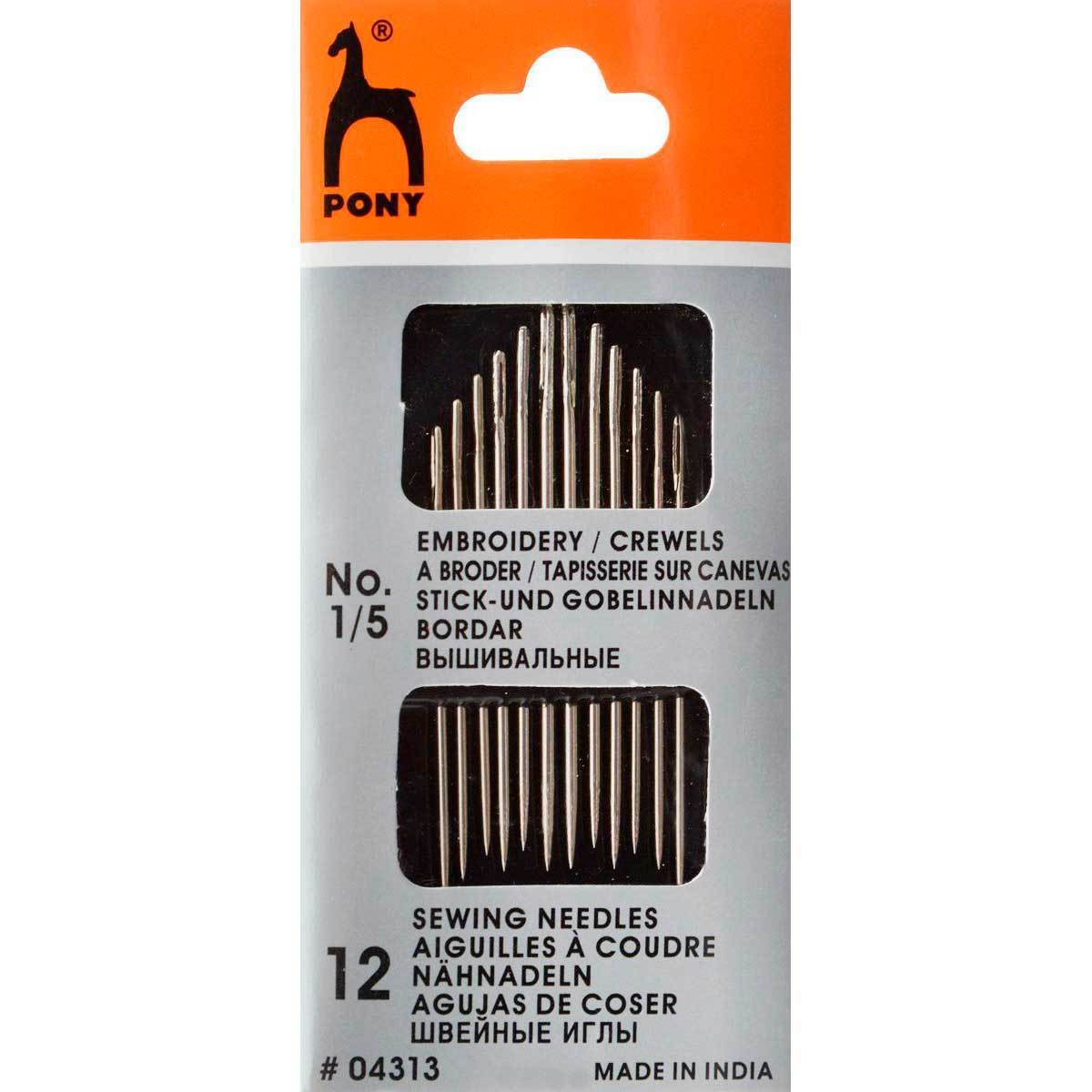 Иглы ручные для вышивания и шитья №1-5,12 шт, Pony