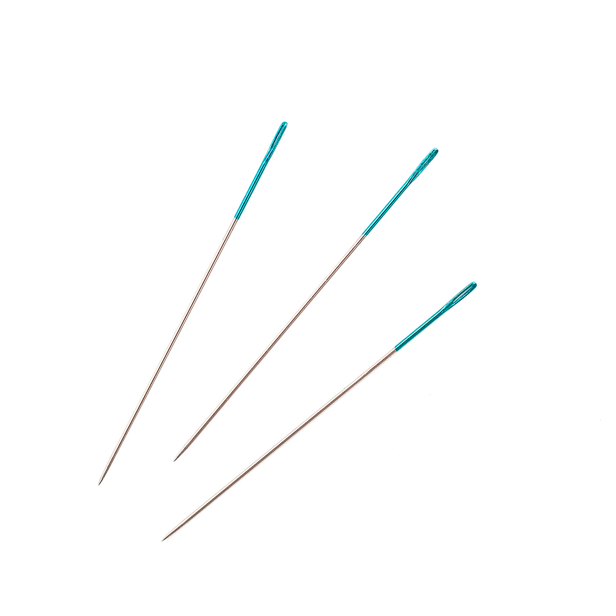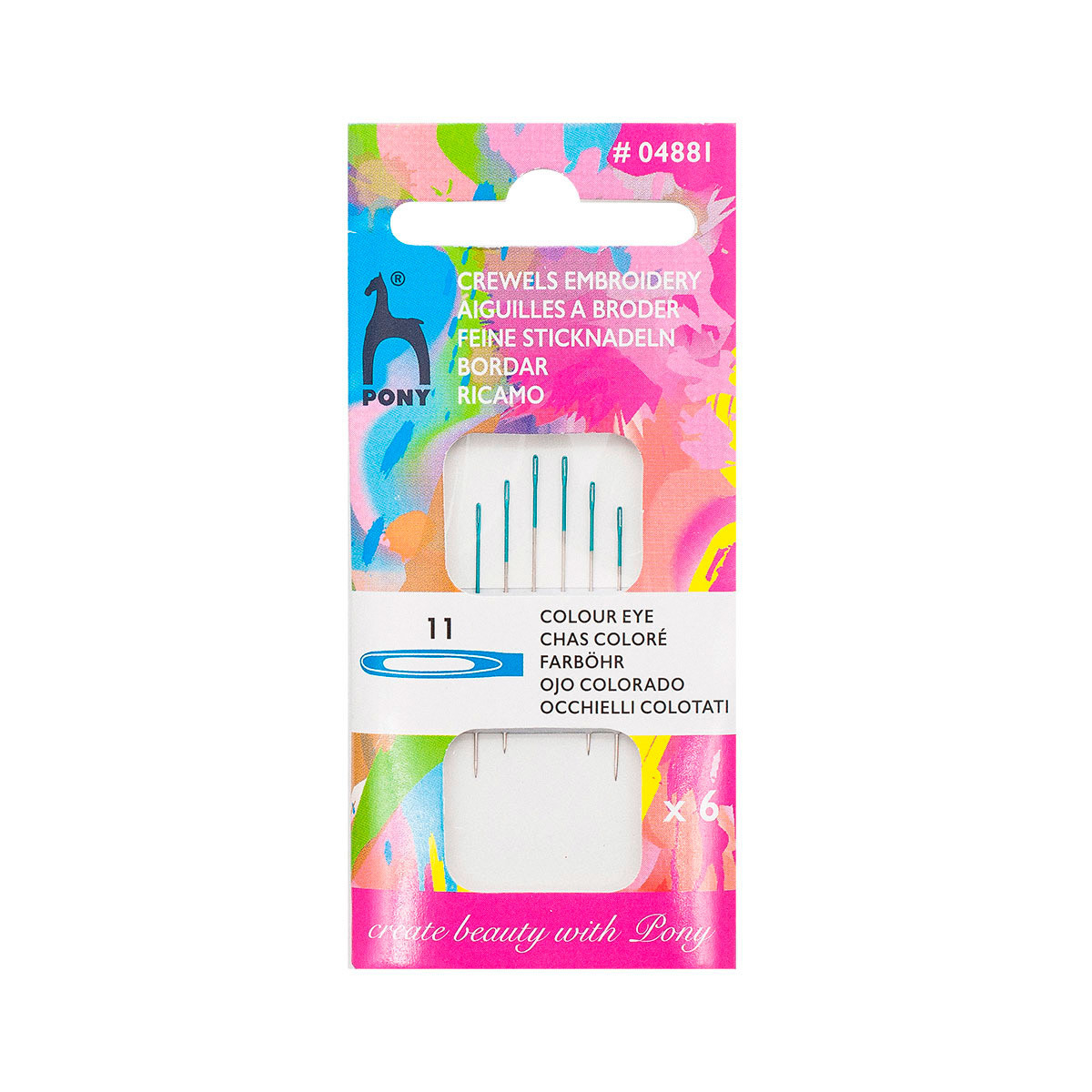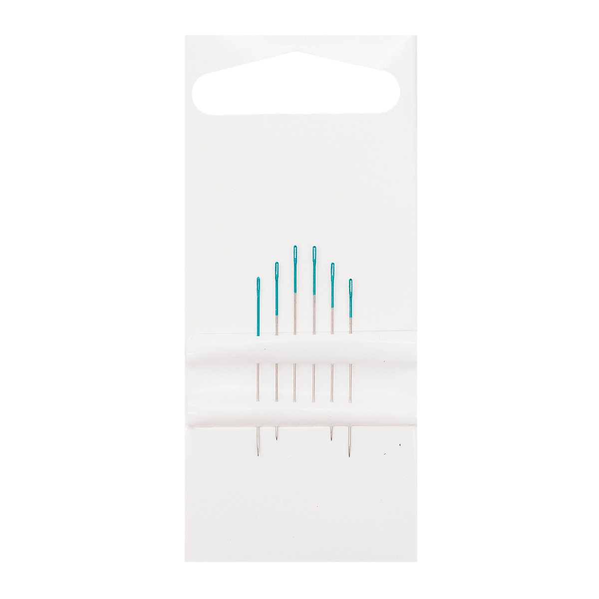 Иглы ручные для вышивания с цветным ушком, №11, серебро/голубой, 6 шт, Pony