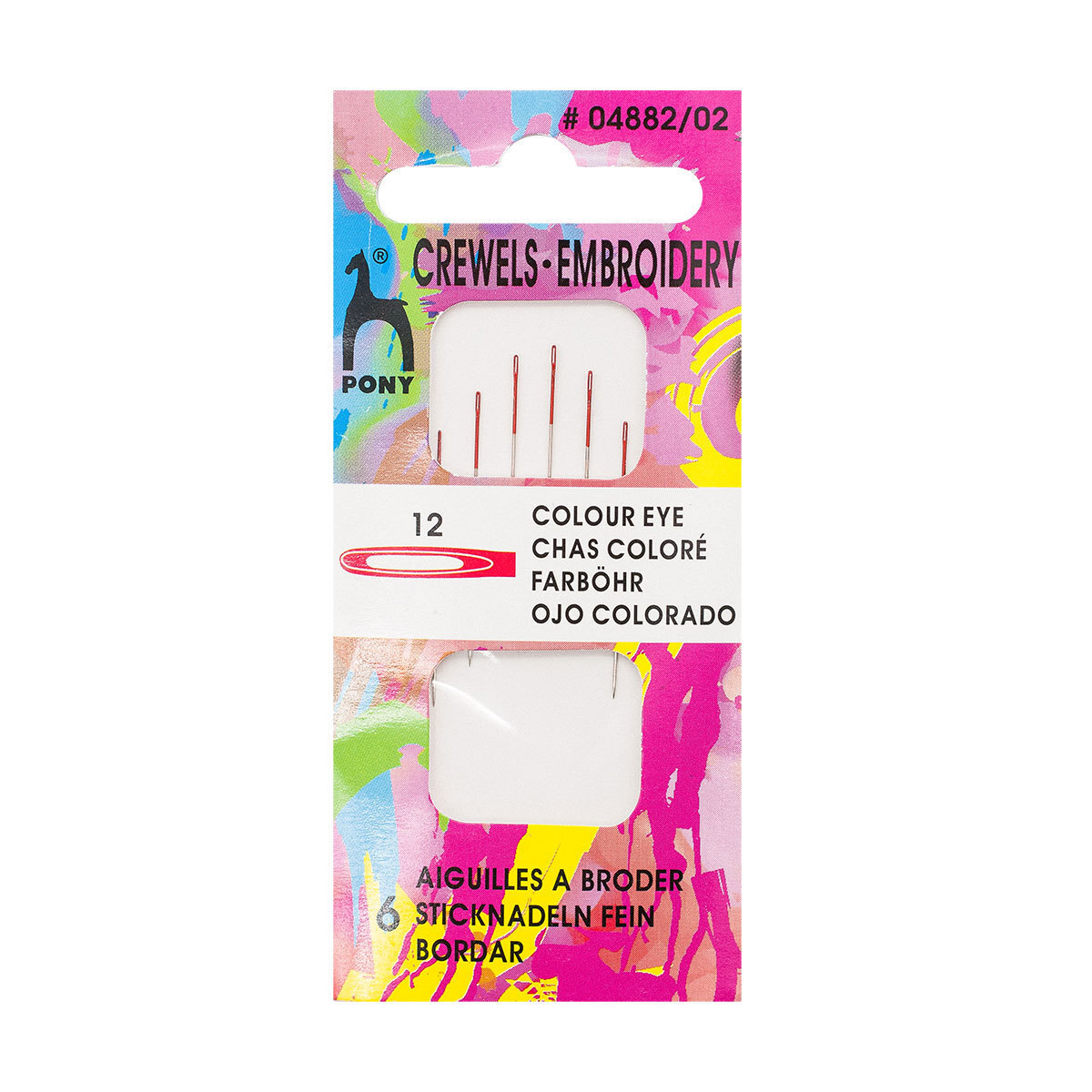 Иглы ручные для вышивания с цветным ушком, разм.12, 6 шт, Pony