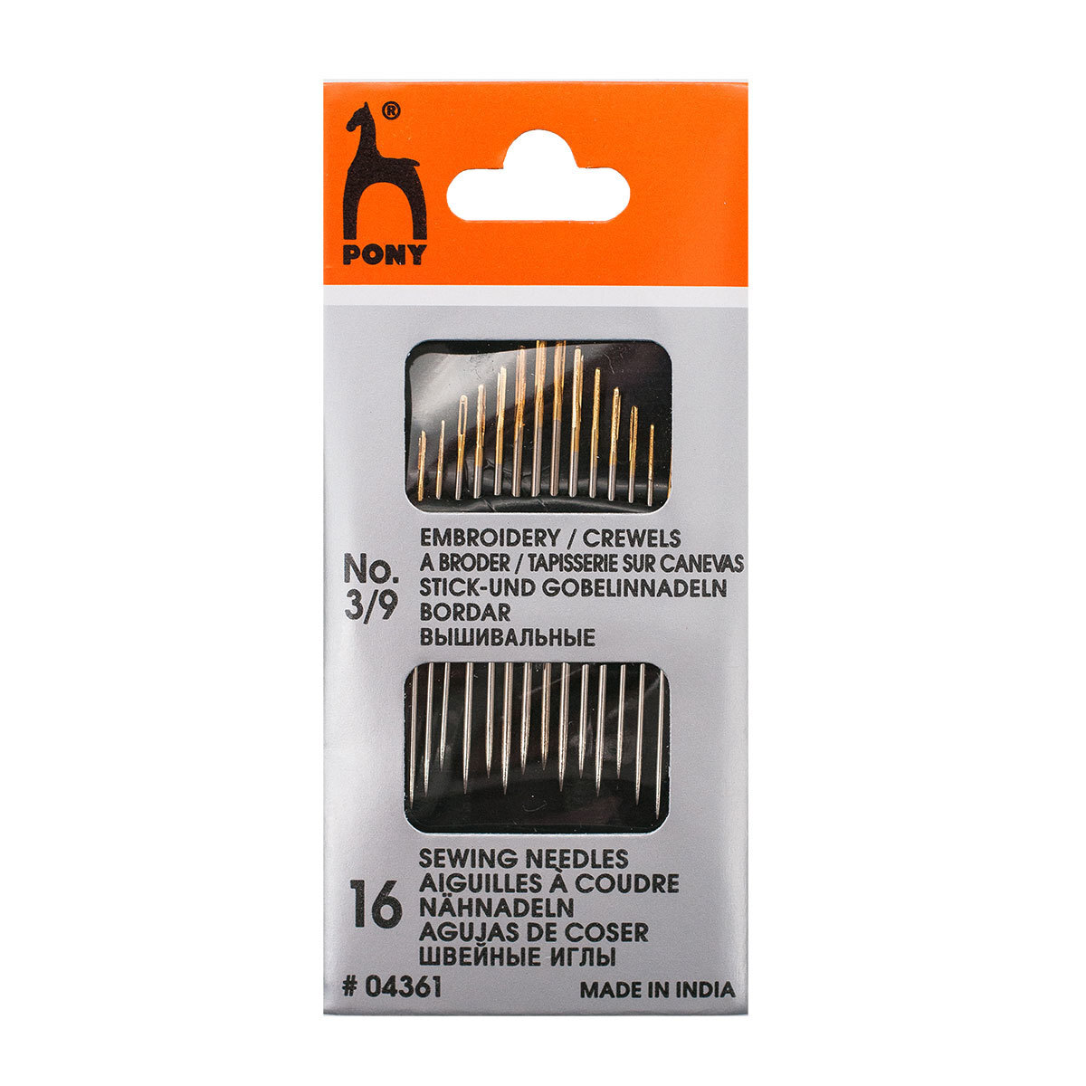 Иглы ручные для вышивания, с золотым ушком №3-9, 16 шт, Pony
