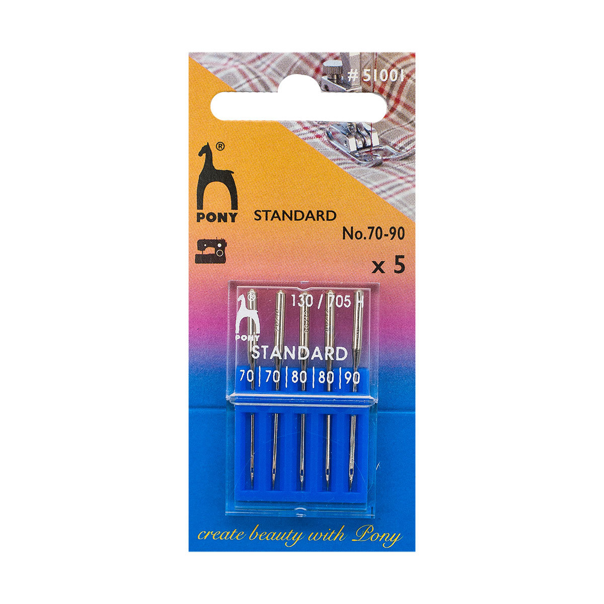 Иглы машинные PONY 'стандарт' №70-90 подходят для бытовых швейных машин любых современных брендов. Оптимальный выбор для тех, кто шьет дома. Позволяют работать с большинством натуральных и синтетических тканей, а также трикотажем. Изготовлены из высокоуглеродистой стали – из такой же стали делают хирургические иглы. Поверхность иглы хромируется. Такая игла не потеряет прочность со временем и от многократного использования. Тип игл: 130 / 705 H. Размер: №70-90. Количество в упаковке: 5 штук. PONY – это всемирно известный индийский бренд. Продукция PONY востребована на всех континентах мира и славится своим высоким качеством и разнообразным ассортиментом товаров.