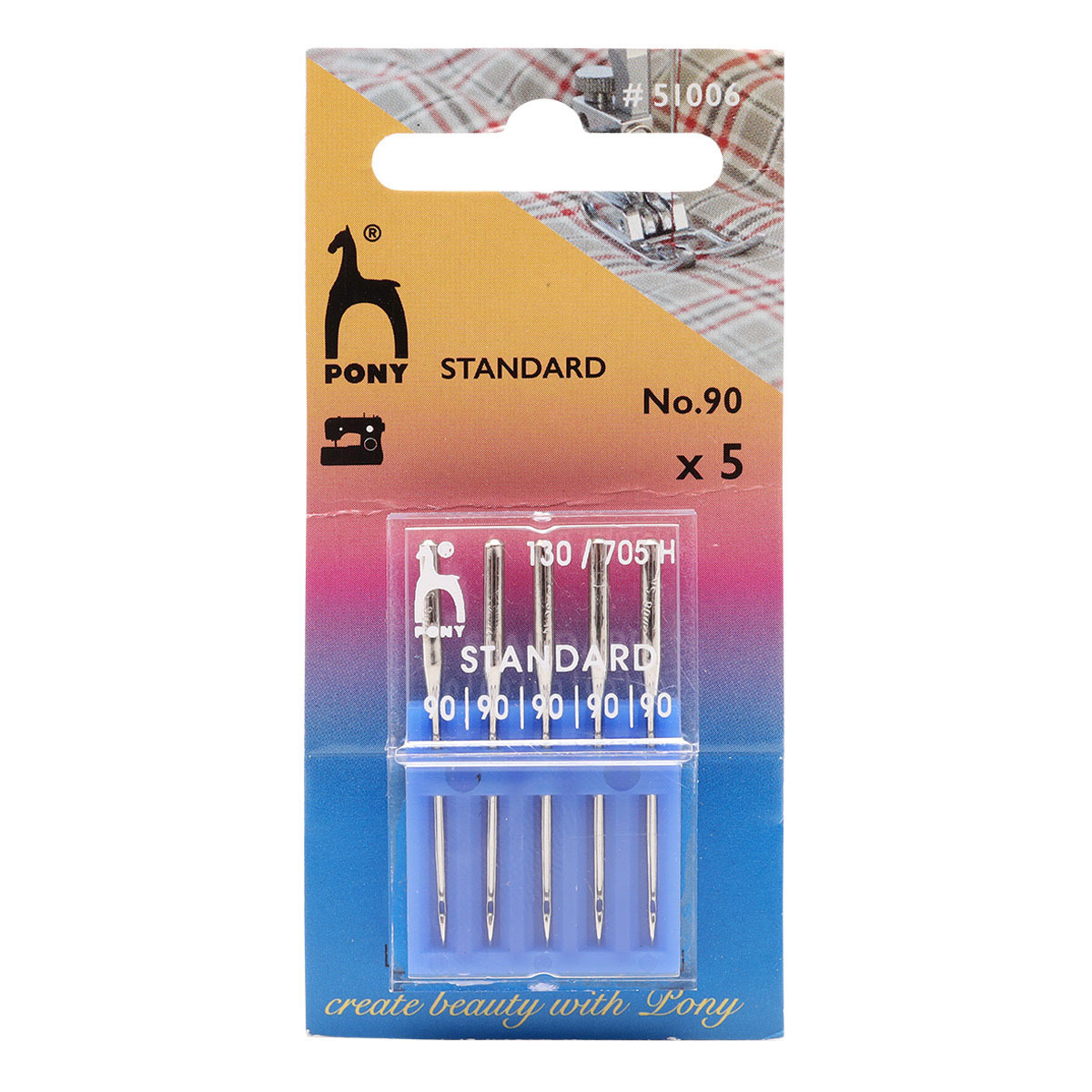 Иглы для швейных машин базовые универсальные 130/705 H, №90, 5 игл Pony, 51006