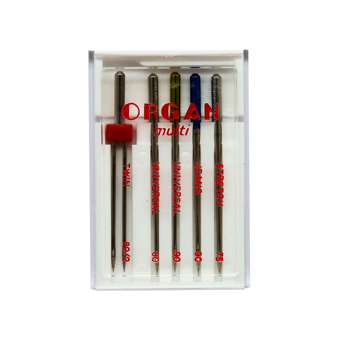 Иглы для швейных машин набор 130/705 H, №75, №90, №90, №80, стрейч, джинс, универсал, двойная, 5 игл, Multi, ORGAN