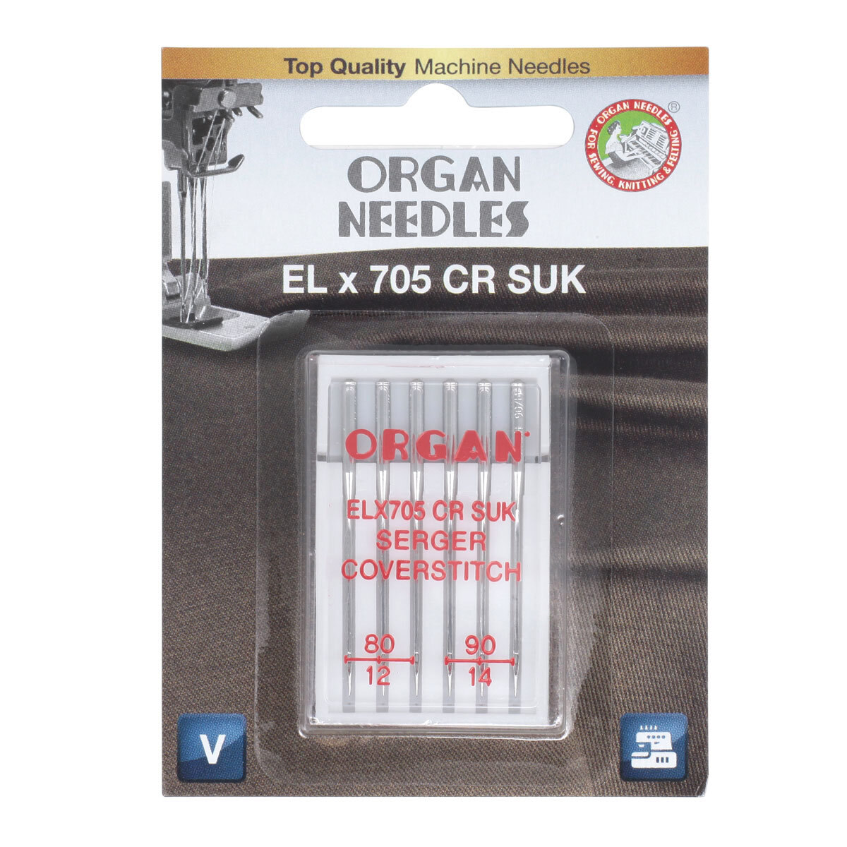 Иглы для швейных распошивальных машин ELx705 CR SUK, №80-90, 6 игл, блистер, ORGAN