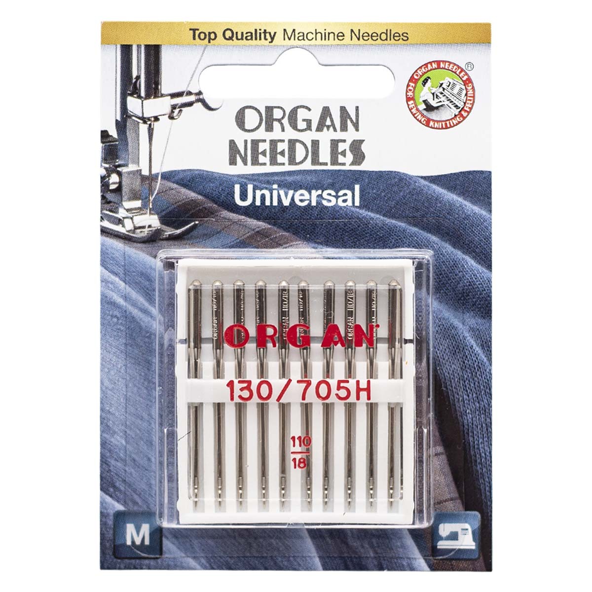 Иглы для швейных машин базовые универсальные 130/705 H, №110, 10 игл, блистер, ORGAN