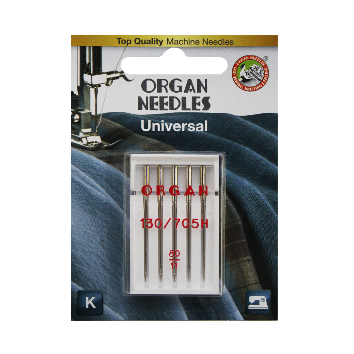 Иглы для швейных машин базовые универсальные 130/705 H, №80, 5 игл, блистер, ORGAN