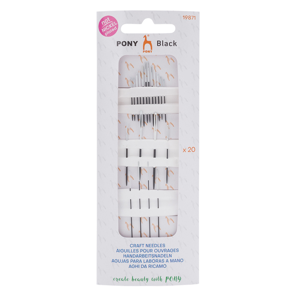 Иглы ручные Craft Black c белым ушком ассорти, 20 шт, Pony, 19871