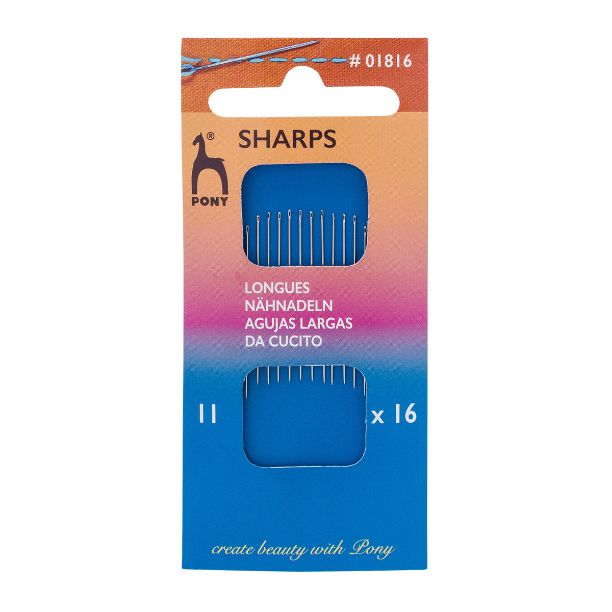Иглы ручные для шитья Sharps №11 с серебряным ушком, 16 шт, Pony, 01816