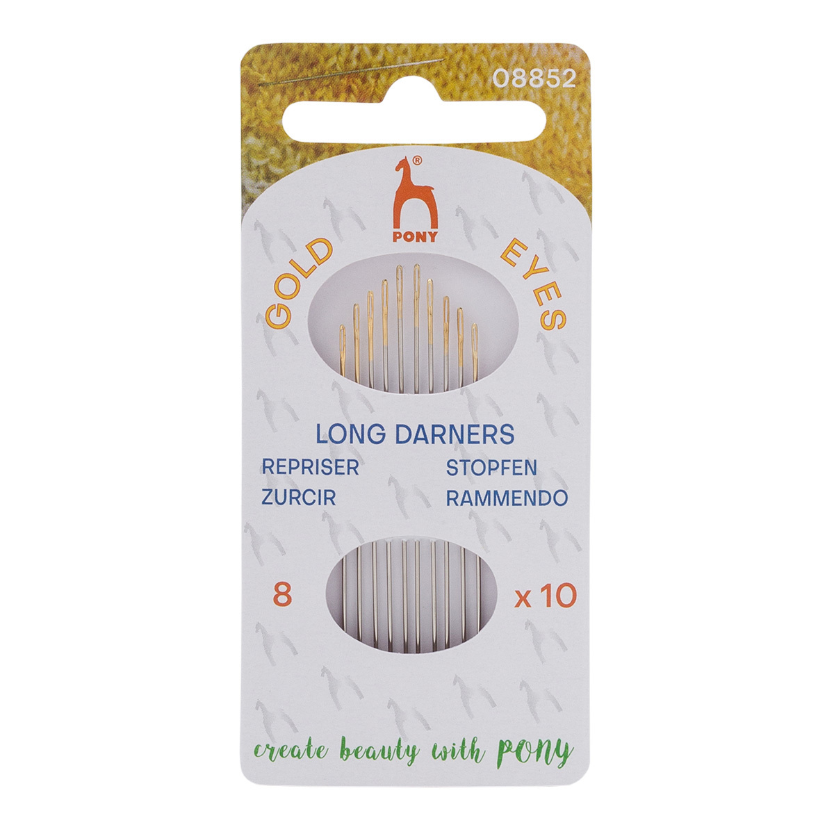 Иглы ручные для штопки длинные Long Darners №8 с золотым ушком, 10 шт, Pony, 08852