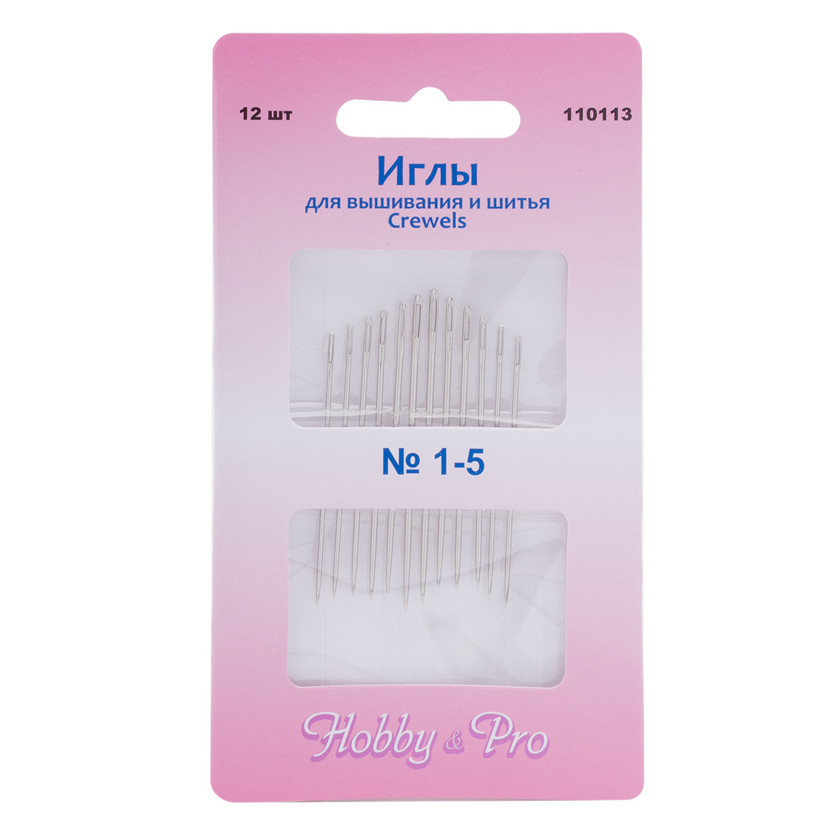 Иглы ручные для вышивания и шитья Crewels №1-5, 12 шт, Hobby&Pro, 110113