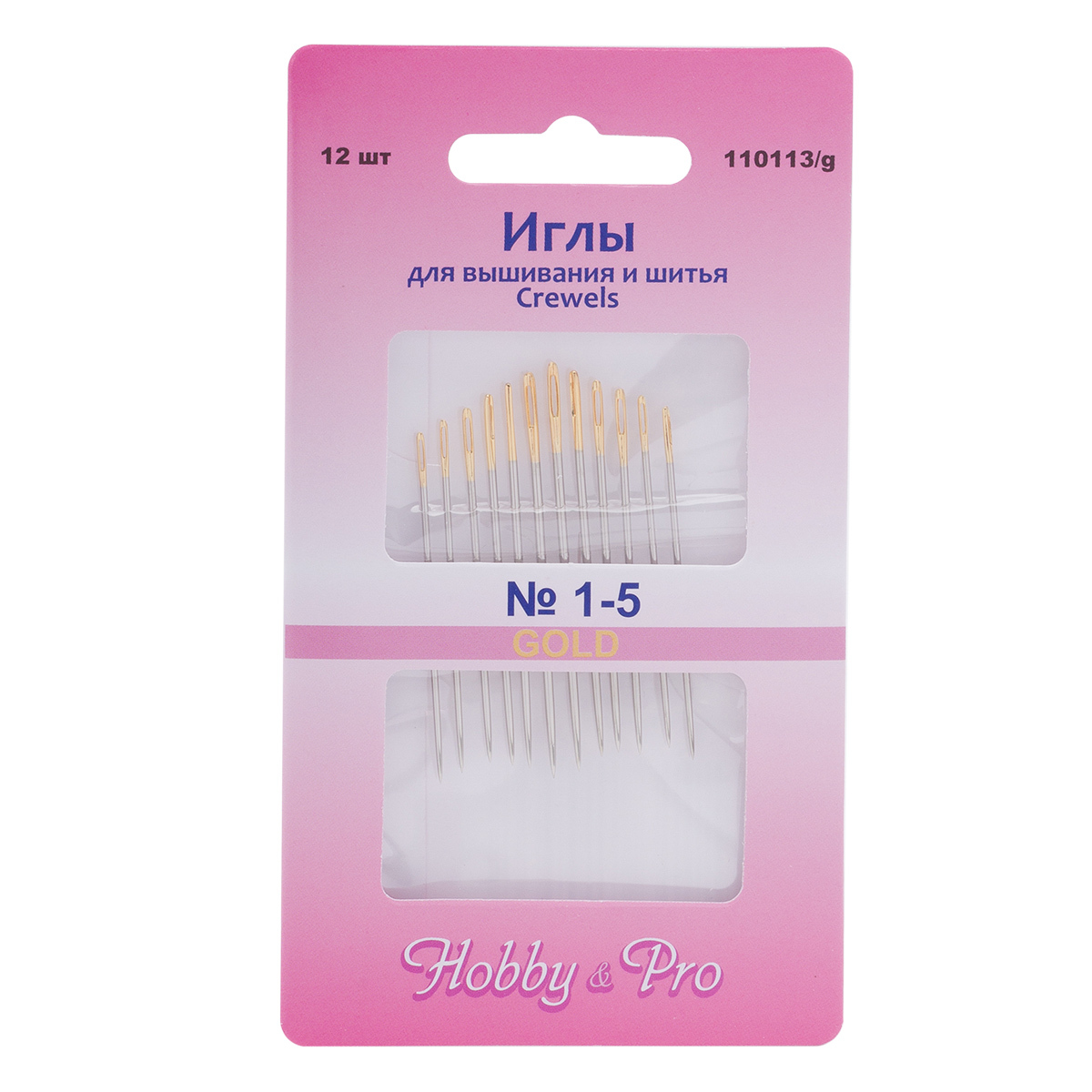 Иглы ручные для вышивания и шитья с золотым ушком Crewels №1-5, 12 шт, Hobby&Pro, 110113/g