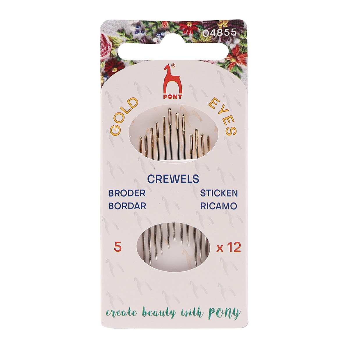 Иглы ручные для вышивания и шитья с золотым ушком Crewels №5, 12 шт, PONY, 04855
