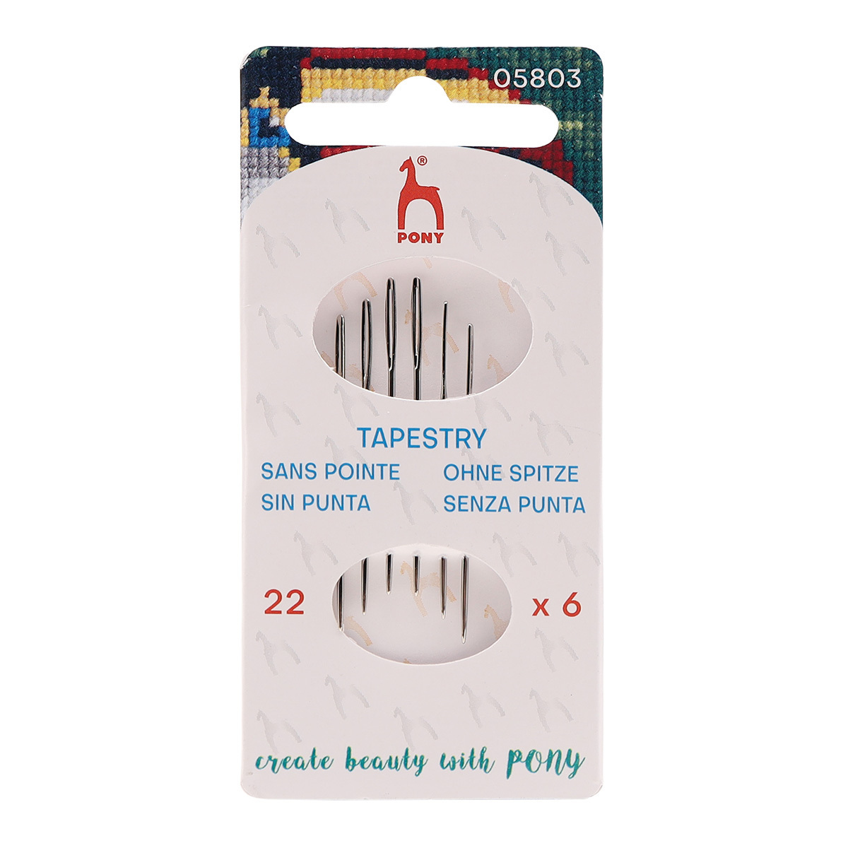 Иглы ручные гобеленовые с серебряным ушком Tapestry №22, 6 шт, PONY, 05803