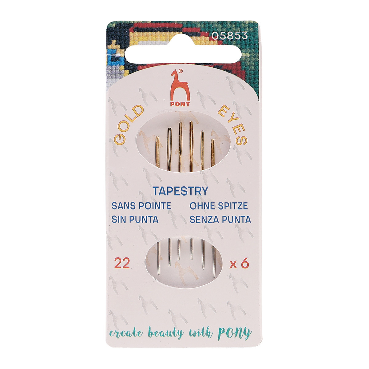 Иглы ручные гобеленовые с золотым ушком Tapestry №22, 6 шт, PONY, 05853