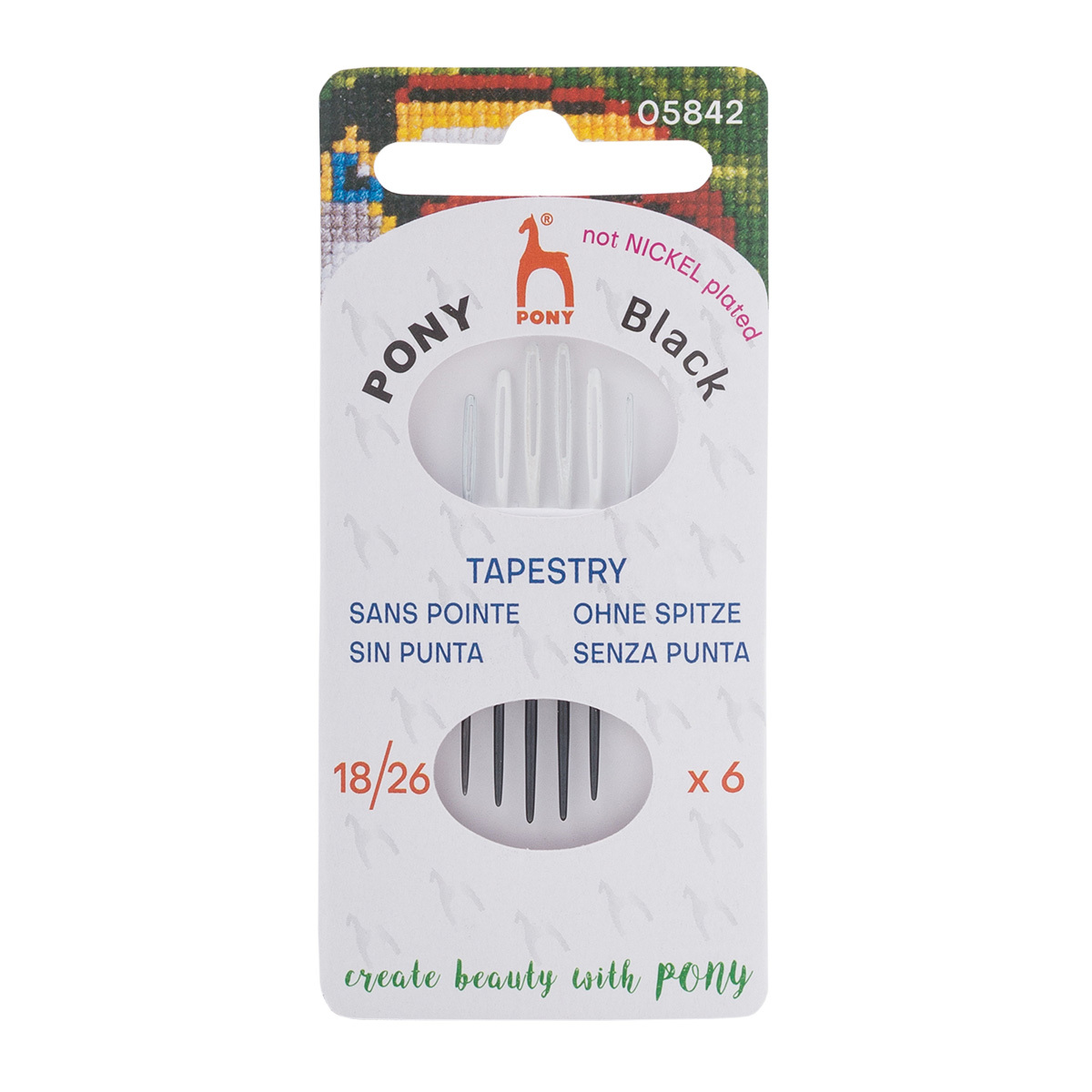 Иглы ручные гобеленовые Tapestry Black №18-26 c белым ушком, 6 шт, Pony, 05842