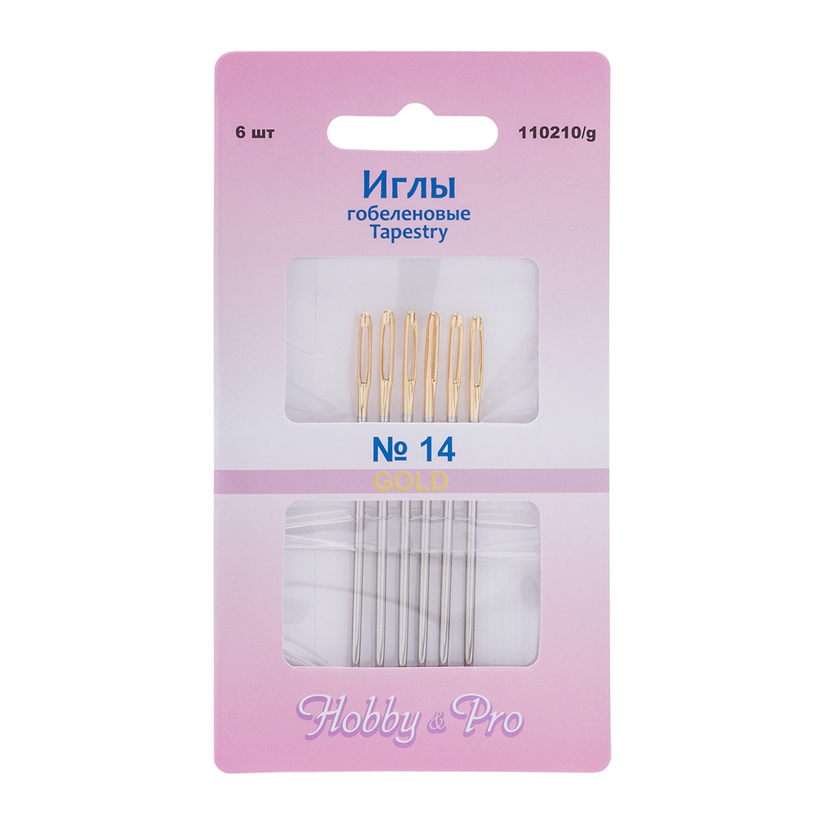 Иглы ручные гобеленовые Tapestry с золотым ушком №14, 6 шт, Hobby&Pro, 110210/g
