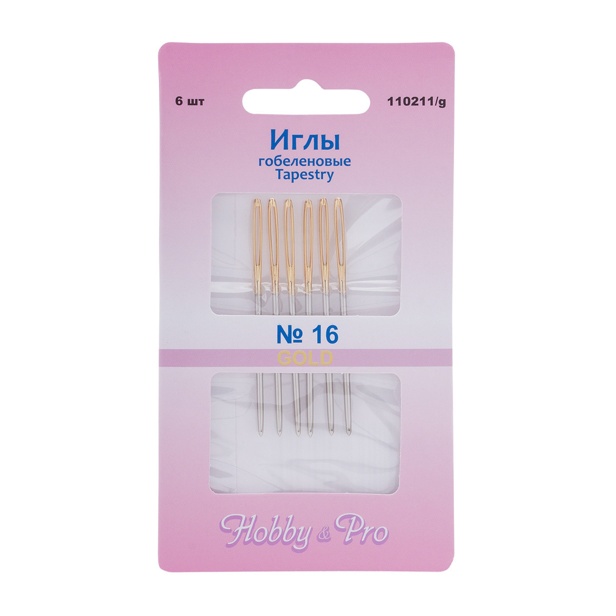 Иглы ручные гобеленовые Tapestry с золотым ушком №16, 6 шт, Hobby&Pro, 110211/g