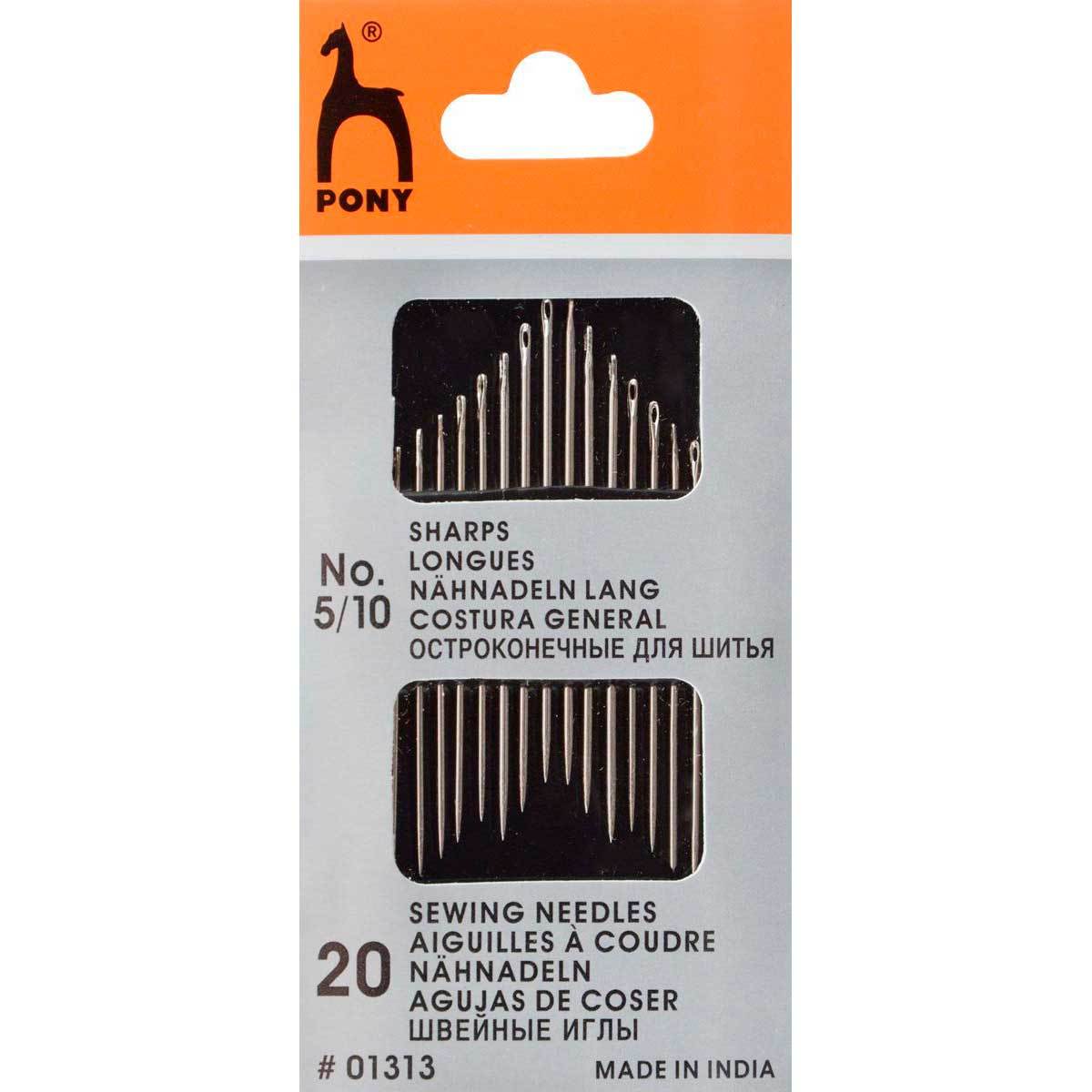 Иглы ручные с острым кончиком № 5-10, 20 шт, Pony
