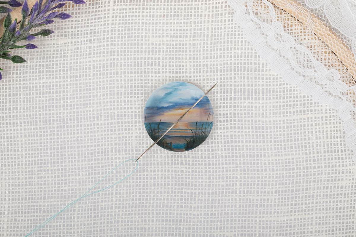 Сильный неодимовый магнит прочно держит иглы на игольнице.