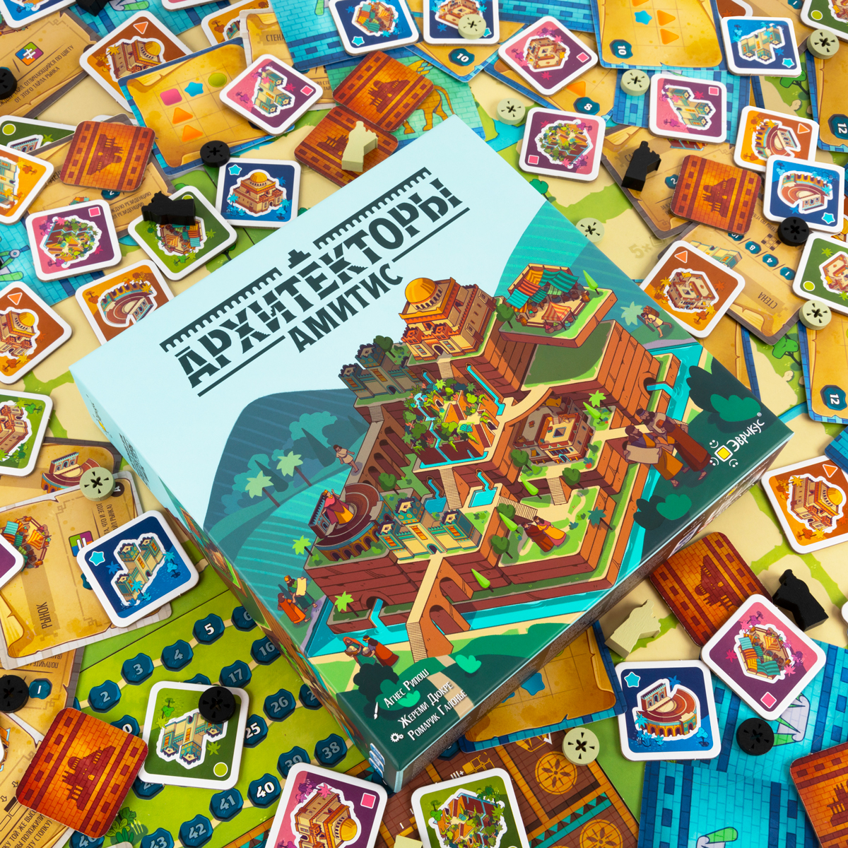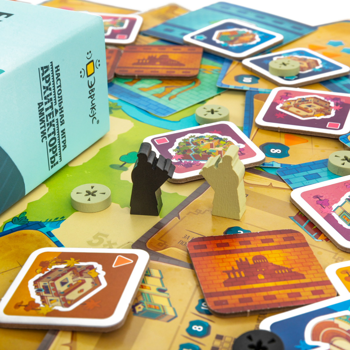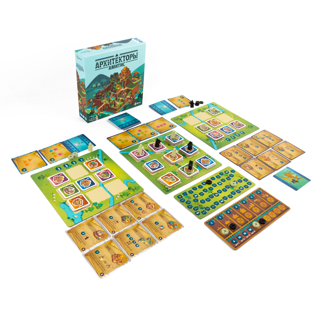 «Архитекторы Амитис» — это дуэльная настольная игра, основной механикой которой является размещение тайлов. В свой ход вы выбираете одну из построек на планшете, поставив вашего архитектора на доступную стопку тайлов, а затем размещаете полученный тайл в своём городе и применяете его эффект. Расположив постройки в своём городе в соответствии с вашими картами проектов, вы зарабатываете победные очки. А если вы будете грамотно распоряжаться своими архитекторами, то сможете снискать благосклонность царя и получить дополнительную награду. Игрок, набравший наибольшее количество очков за время строительства, будет назван лучшим архитектором Вавилона!